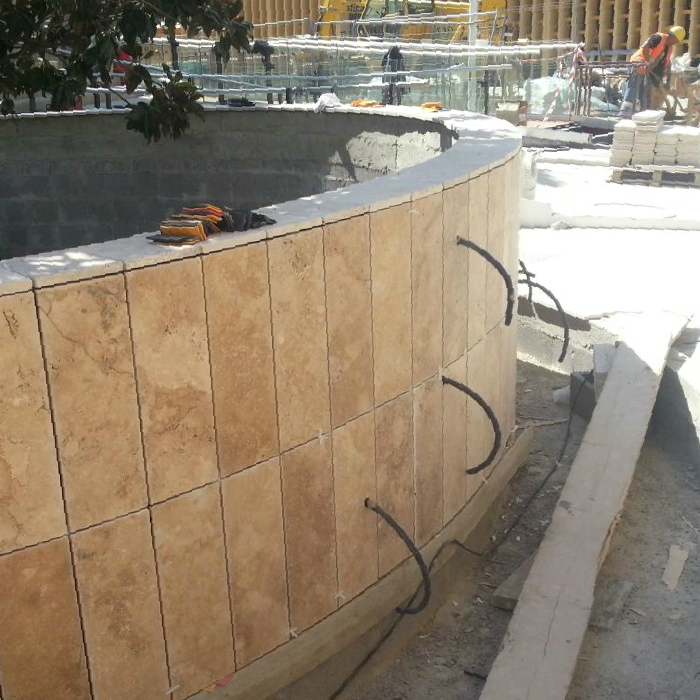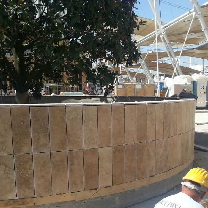 Die Firma Pietre di Rapolano wurde von NUSSLI , eine Schweizer Firma ausgewählt, die mit dem Bau und der Umsetzung des mexikanischen Pavillons beauftragt war.