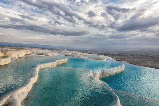 Damit Sie einen noch besseren Eindruck von dem bekommen, was sich mit Travertin umsetzen lässt, möchten wir Ihnen in dieser Fotogallerie einige, von uns durchgeführte Arbeiten vorstellen und Bilder von dem Steinbruch Tivoli und dem eindrucksvollen Pamukkale in der Türkei zeigen. Dieser Ort, der auf türkisch „Watteschloss“ bedeutet, wurde von zahlreichen Erdbeben heimgesucht, die zur Entstehung von etlichen Thermalquellen geführt haben. Beim Heraussprudeln verliert das Wasser einen Großteil seines Kohlendioxid, wobei Kalziumcarbonat entsteht, das zu diesen charakteristischen Formationen aus weißem Kalk und Travertin geführt hat, die sich über den Bergabhang erstrecken.